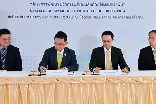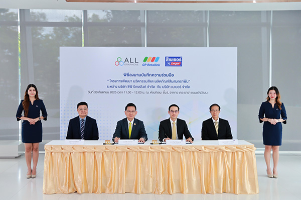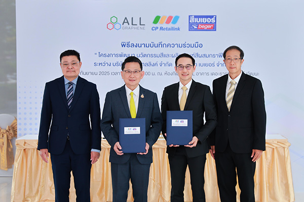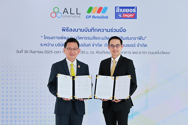บริษัท เบเยอร์ จำกัด (Beger) ผู้นำด้านนวัตกรรมสีทาอาคารและเคมีภัณฑ์ก่อสร้างของไทย ร่วมกับ บริษัท ซีพี รีเทลลิงค์ จำกัด (CP Retailink) ผู้นำโซลูชันระบบค้าปลีกและผู้พัฒนาวัสดุกราฟีน ลงนามบันทึกข้อตกลงความร่วมมือทางวิชาการ (MOU) ณ ห้องกิเลน ชั้น L เดอะ ธารา แจ้งวัฒนะ เพื่อพัฒนา “Graphene for Paint Technology” นวัตกรรมใหม่สำหรับสีรุ่นใหม่ที่ต่อยอดการใช้วัสดุกราฟีนในอุตสาหกรรมสีและเคมีภัณฑ์ก่อสร้าง